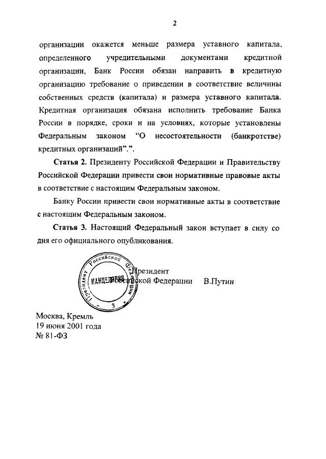 ФЕДЕРАЛЬНЫЙ ЗАКОН от 19.06.2001 N 81-ФЗ