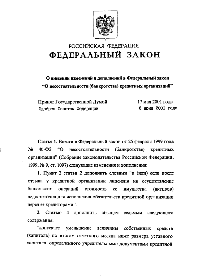 ФЕДЕРАЛЬНЫЙ ЗАКОН от 19.06.2001 N 86-ФЗ