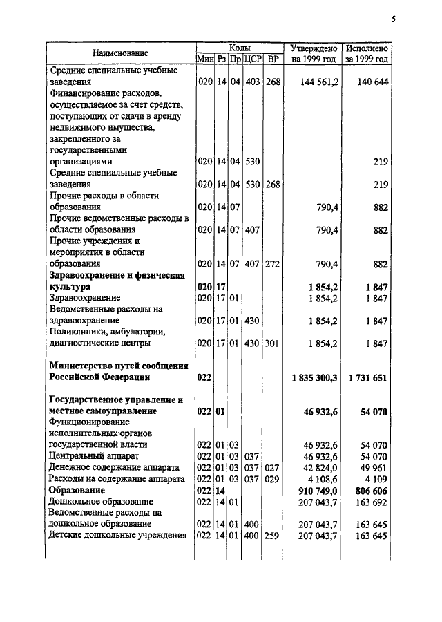 "ОБ ИСПОЛНЕНИИ ФЕДЕРАЛЬНОГО БЮДЖЕТА ЗА 1999 ГОД"