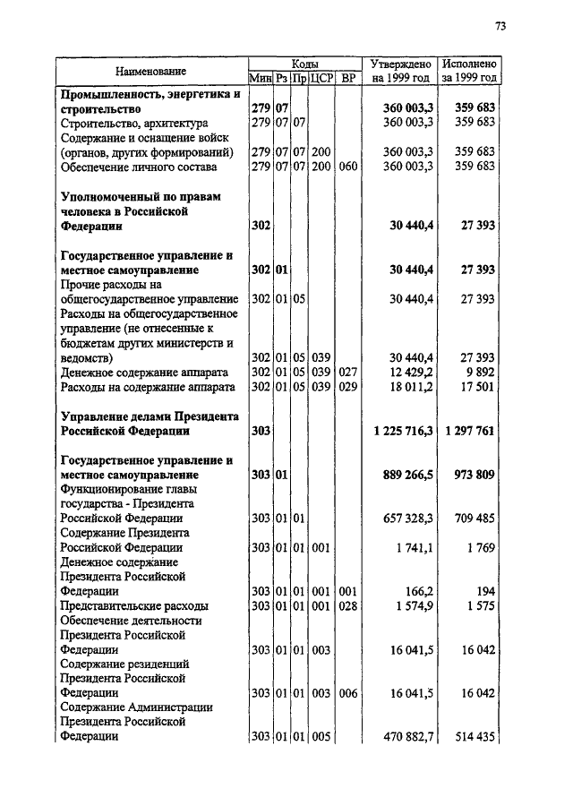 "ОБ ИСПОЛНЕНИИ ФЕДЕРАЛЬНОГО БЮДЖЕТА ЗА 1999 ГОД"