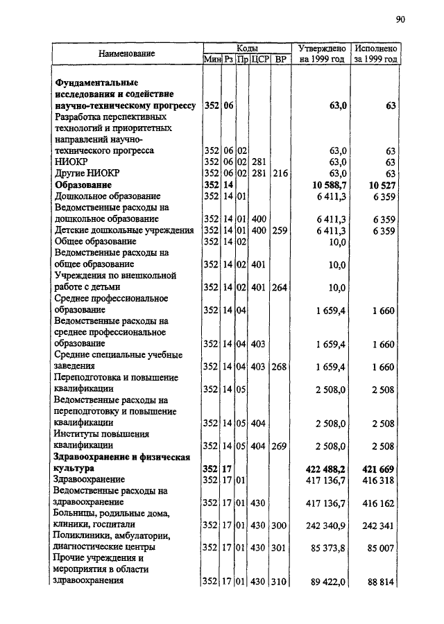 "ОБ ИСПОЛНЕНИИ ФЕДЕРАЛЬНОГО БЮДЖЕТА ЗА 1999 ГОД"