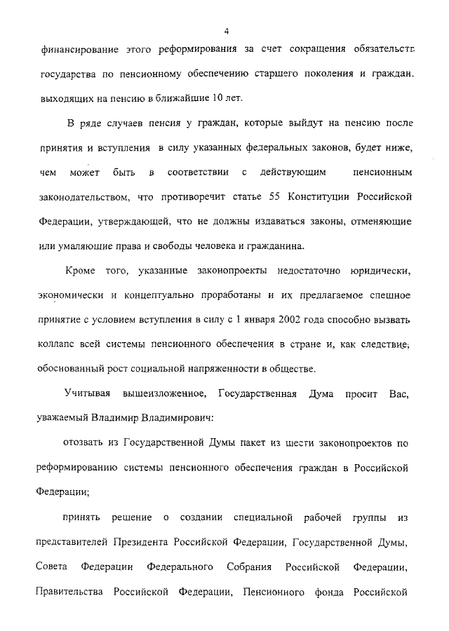 "ОБ ОБРАЩЕНИИ ГОСУДАРСТВЕННОЙ ДУМЫ ФЕДЕРАЛЬНОГО СОБРАНИЯ РОССИЙСКОЙ ФЕДЕРАЦИИ "К ПРЕЗИДЕНТУ РОССИЙСКОЙ ФЕДЕРАЦИИ В.В. ПУТИНУ О РЕФОРМИРОВАНИИ СИСТЕМЫ ПЕНСИОННОГО ОБЕСПЕЧЕНИЯ ГРАЖДАН В РОССИЙСКОЙ ФЕДЕРАЦИИ"
