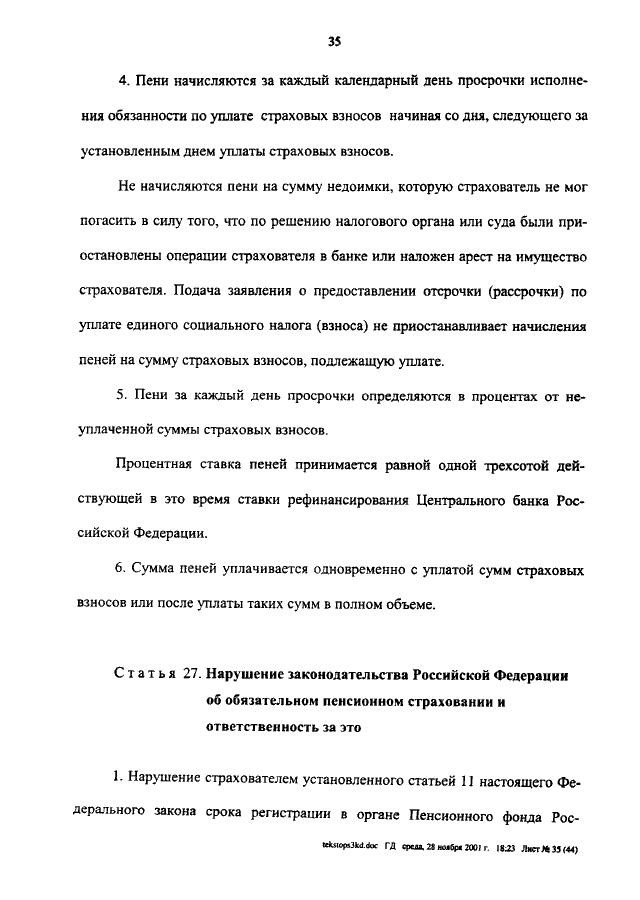 ФЕДЕРАЛЬНЫЙ ЗАКОН от 15.12.2001 N 167-ФЗ