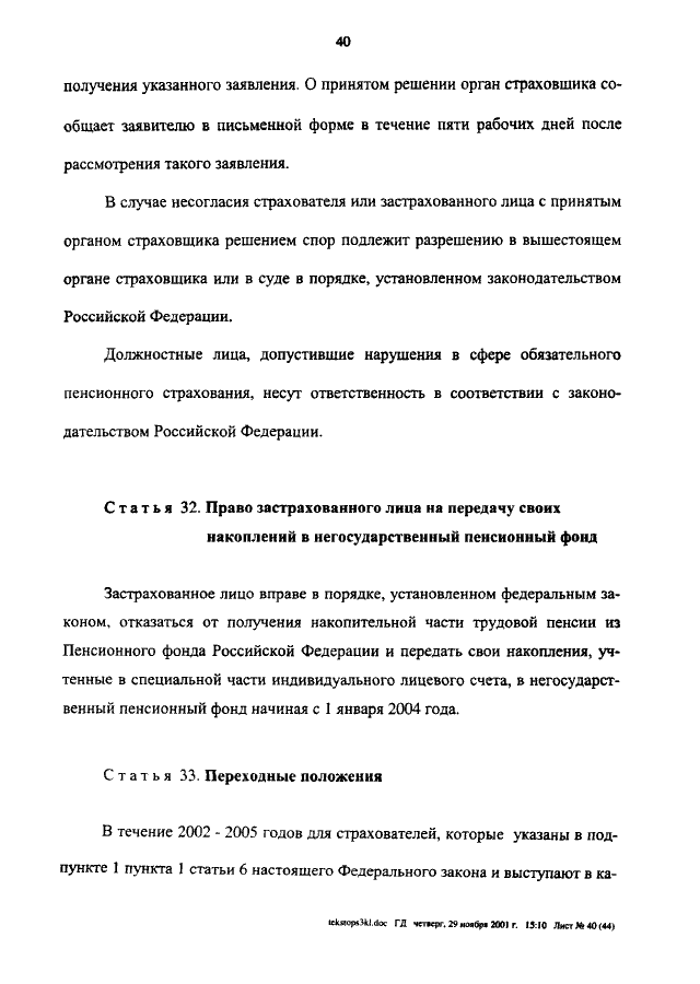 ФЕДЕРАЛЬНЫЙ ЗАКОН от 15.12.2001 N 167-ФЗ