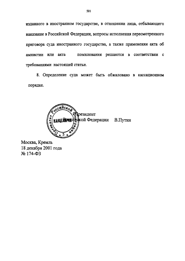 от 18.12.2001 N 174-ФЗ (принят ГД ФС РФ 22.11.2001)