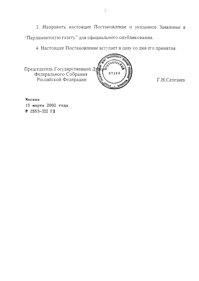 ПОСТАНОВЛЕНИЕ ГД ФС РФ от 15.03.2002 N 2553-III ГД