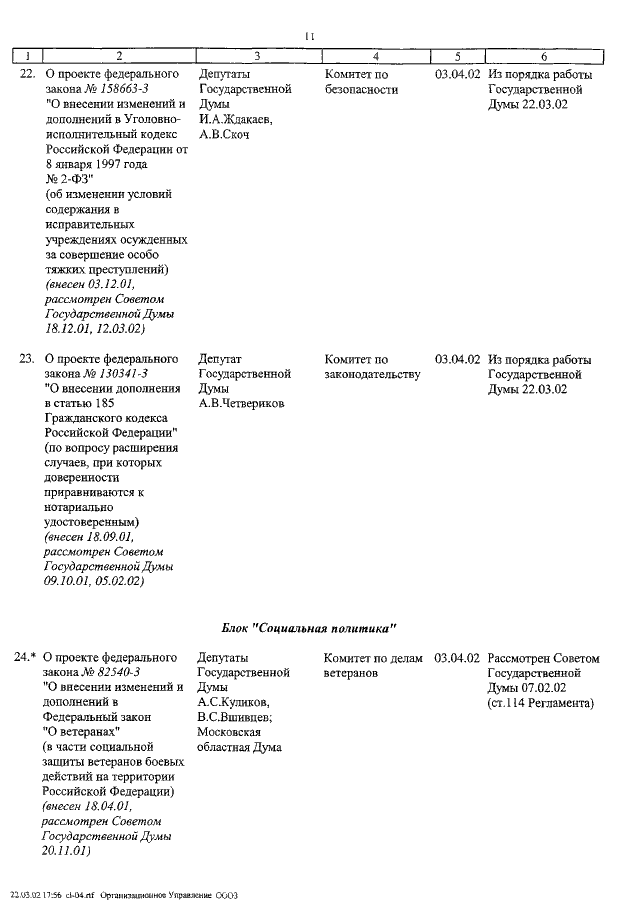 "О КАЛЕНДАРЕ РАССМОТРЕНИЯ ВОПРОСОВ ГОСУДАРСТВЕННОЙ ДУМОЙ С 3 ПО 26 АПРЕЛЯ 2002 ГОДА"