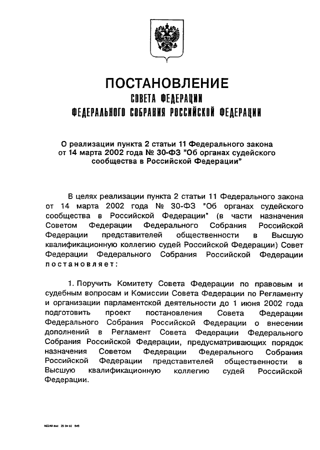 "О РЕАЛИЗАЦИИ ПУНКТА 2 СТАТЬИ 11 ФЕДЕРАЛЬНОГО ЗАКОНА ОТ 14 МАРТА 2002 ГОДА N 30-ФЗ "ОБ ОРГАНАХ СУДЕЙСКОГО СООБЩЕСТВА В РОССИЙСКОЙ ФЕДЕРАЦИИ"