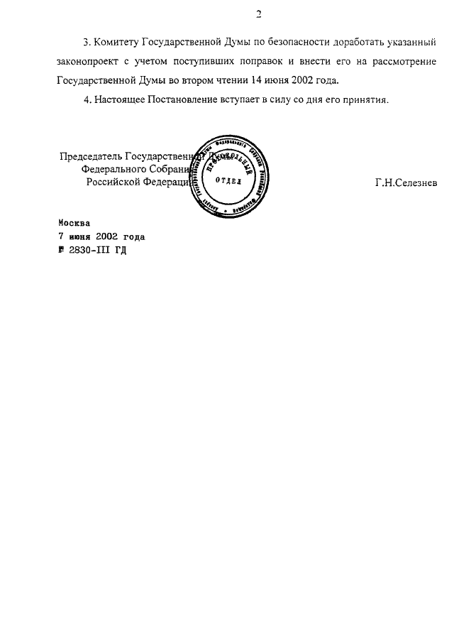 ПОСТАНОВЛЕНИЕ ГД ФС РФ от 07.06.2002 N 2830-III ГД