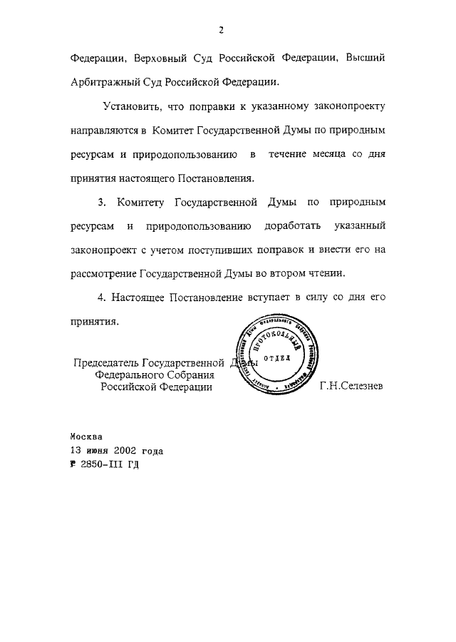 ПОСТАНОВЛЕНИЕ ГД ФС РФ от 13.06.2002 N 2850-III ГД