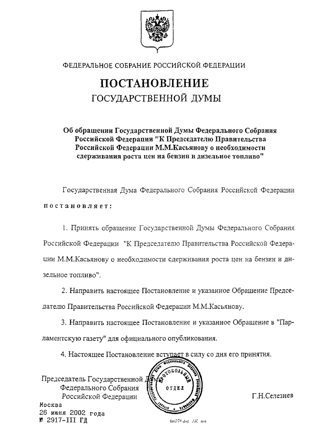 ПОСТАНОВЛЕНИЕ ГД ФС РФ от 26.06.2002 N 2917-III ГД