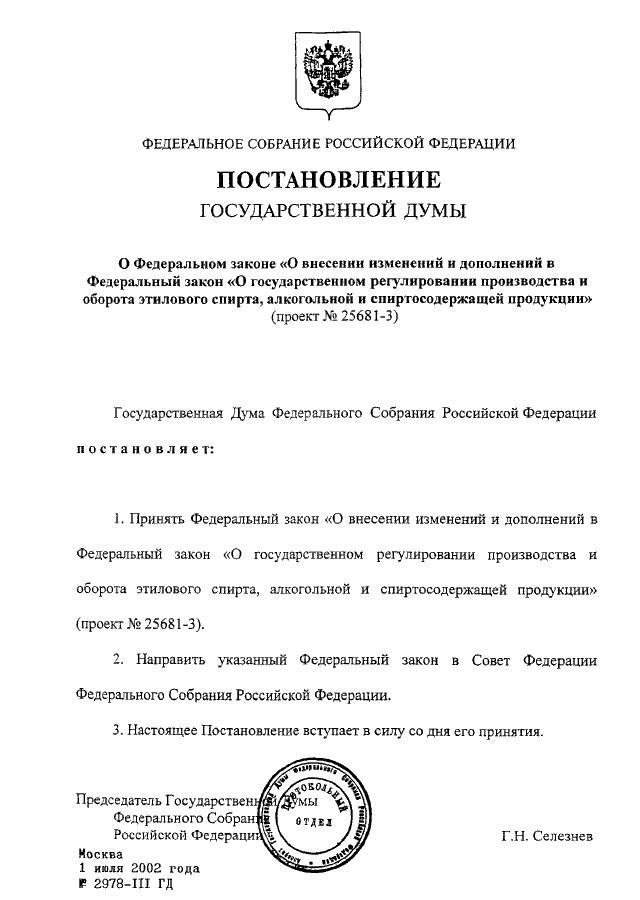 ПОСТАНОВЛЕНИЕ ГД ФС РФ от 01.07.2002 N 2978-III ГД