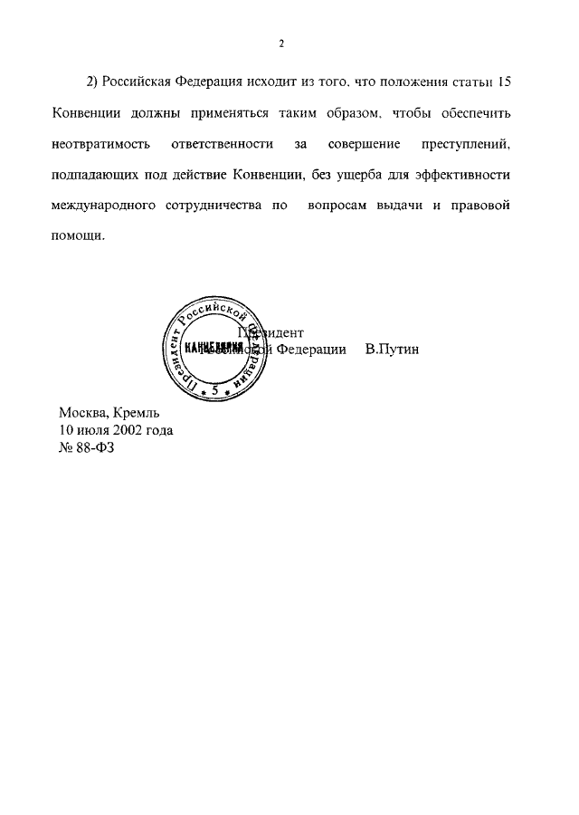 ФЕДЕРАЛЬНЫЙ ЗАКОН от 10.07.2002 N 88-ФЗ