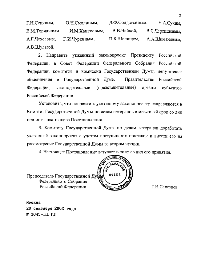 ПОСТАНОВЛЕНИЕ ГД ФС РФ от 20.09.2002 N 3045-III ГД