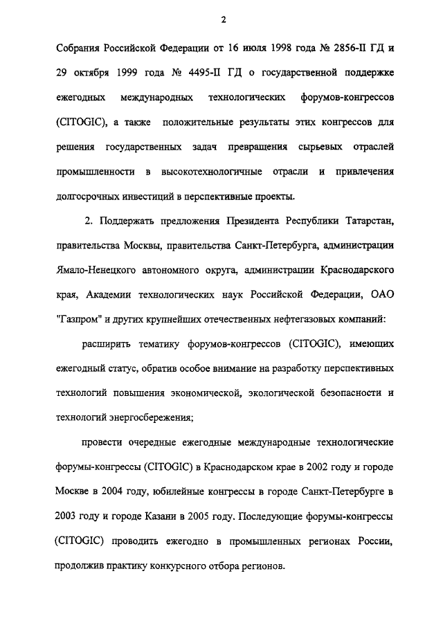 "О ГОСУДАРСТВЕННОЙ ПОДДЕРЖКЕ ЕЖЕГОДНЫХ МЕЖДУНАРОДНЫХ ФОРУМОВ - КОНГРЕССОВ ПО ВЫСОКИМ ПРОМЫШЛЕННЫМ ТЕХНОЛОГИЯМ (CITOGIC)"
