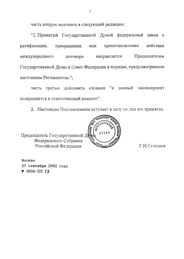 ПОСТАНОВЛЕНИЕ ГД ФС РФ от 27.09.2002 N 3093-III ГД