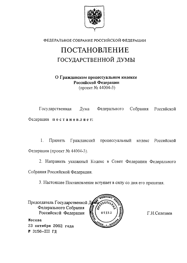 ПОСТАНОВЛЕНИЕ ГД ФС РФ от 23.10.2002 N 3156-III ГД