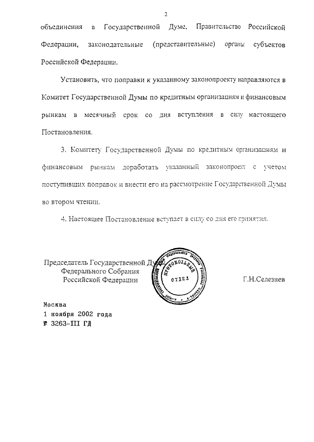 ПОСТАНОВЛЕНИЕ ГД ФС РФ от 01.11.2002 N 3263-III ГД