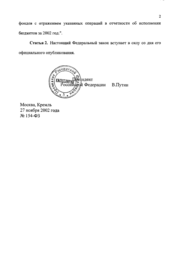 ФЕДЕРАЛЬНЫЙ ЗАКОН от 27.11.2002 N 154-ФЗ