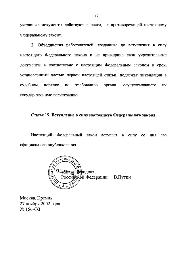 ФЕДЕРАЛЬНЫЙ ЗАКОН от 27.11.2002 N 156-ФЗ