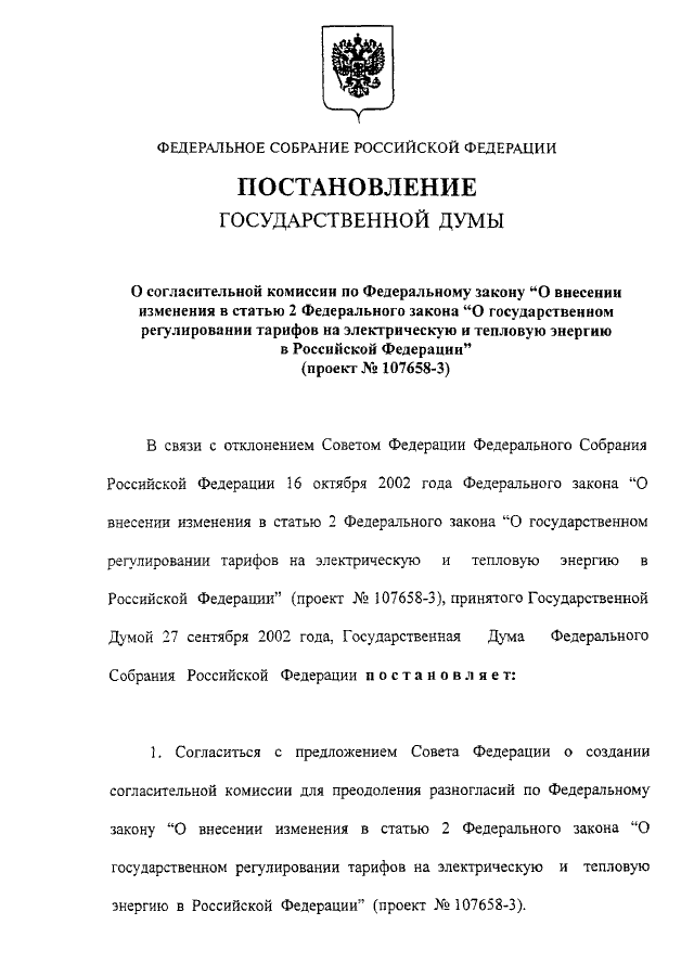 ПОСТАНОВЛЕНИЕ ГД ФС РФ от 15.11.2002 N 3301-III ГД