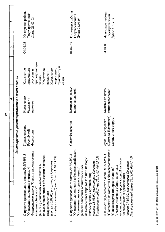 "О КАЛЕНДАРЕ РАССМОТРЕНИЯ ВОПРОСОВ ГОСУДАРСТВЕННОЙ ДУМОЙ СО 2 ПО 25 АПРЕЛЯ 2003 ГОДА"