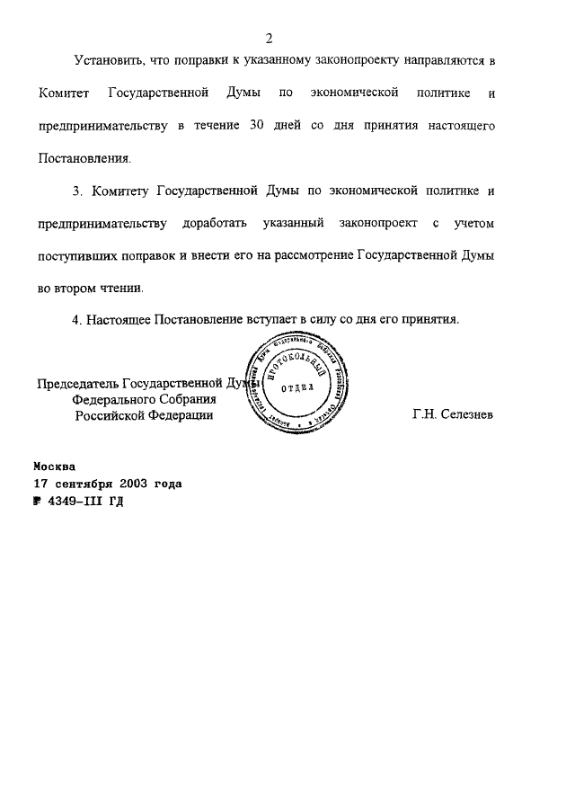 ПОСТАНОВЛЕНИЕ ГД ФС РФ от 17.09.2003 N 4349-III ГД