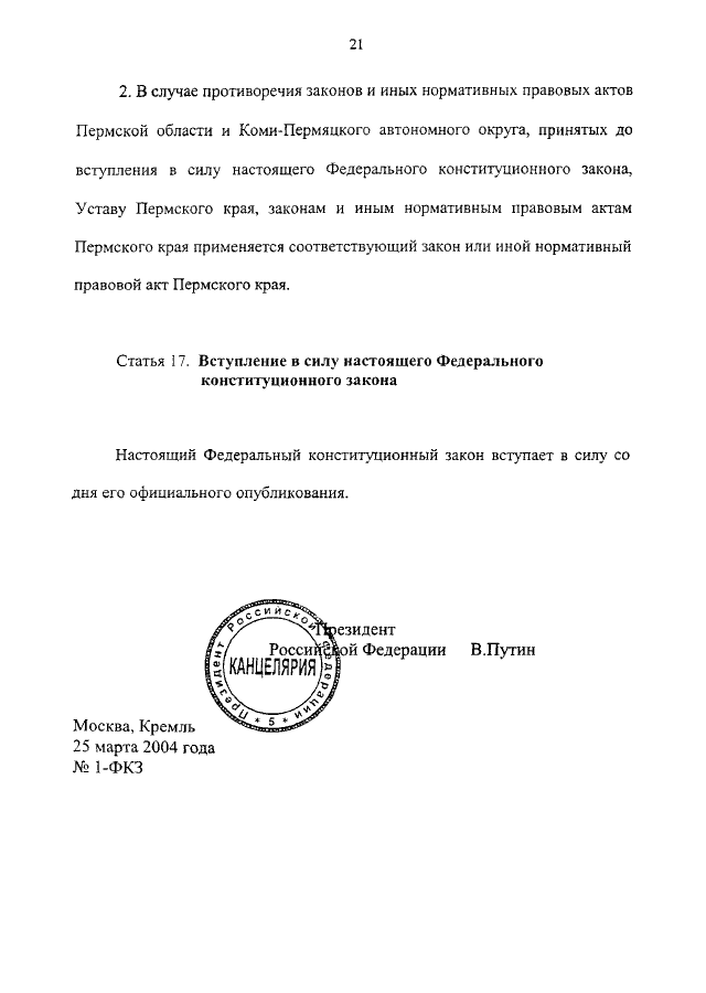 ФЕДЕРАЛЬНЫЙ КОНСТИТУЦИОННЫЙ ЗАКОН от 25.03.2004 N 1-ФКЗ