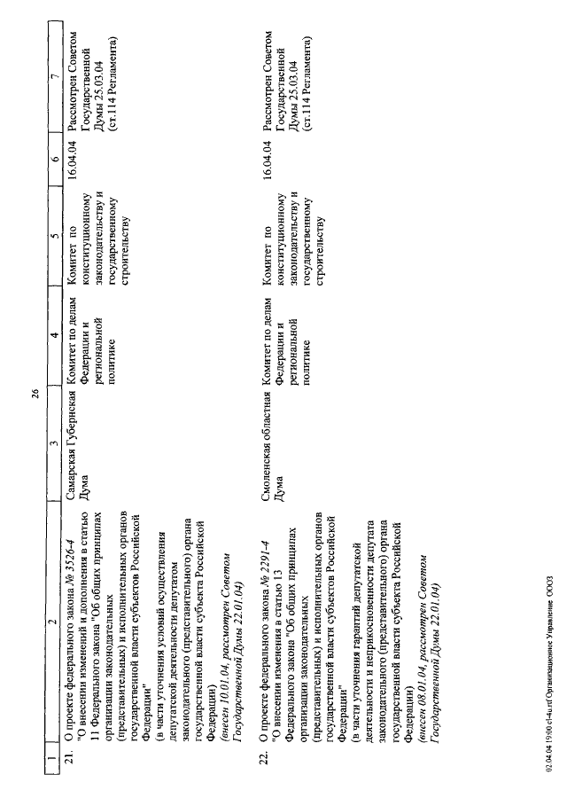 "О КАЛЕНДАРЕ РАССМОТРЕНИЯ ВОПРОСОВ ГОСУДАРСТВЕННОЙ ДУМОЙ СО 2 ПО 30 АПРЕЛЯ 2004 ГОДА"