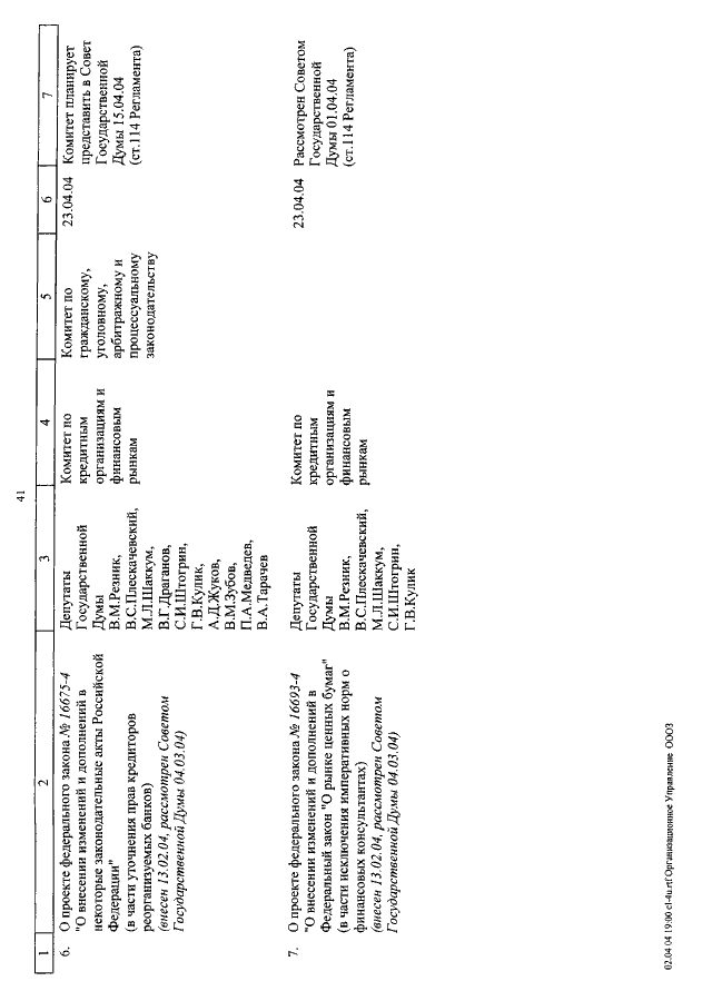 "О КАЛЕНДАРЕ РАССМОТРЕНИЯ ВОПРОСОВ ГОСУДАРСТВЕННОЙ ДУМОЙ СО 2 ПО 30 АПРЕЛЯ 2004 ГОДА"