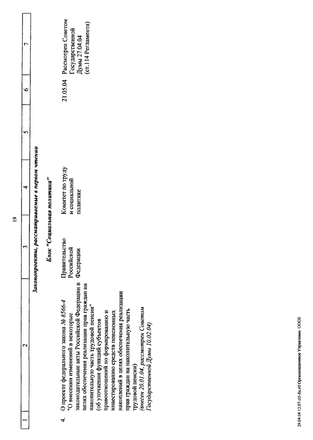 "О КАЛЕНДАРЕ РАССМОТРЕНИЯ ВОПРОСОВ ГОСУДАРСТВЕННОЙ ДУМОЙ С 12 МАЯ ПО 11 ИЮНЯ 2004 ГОДА"