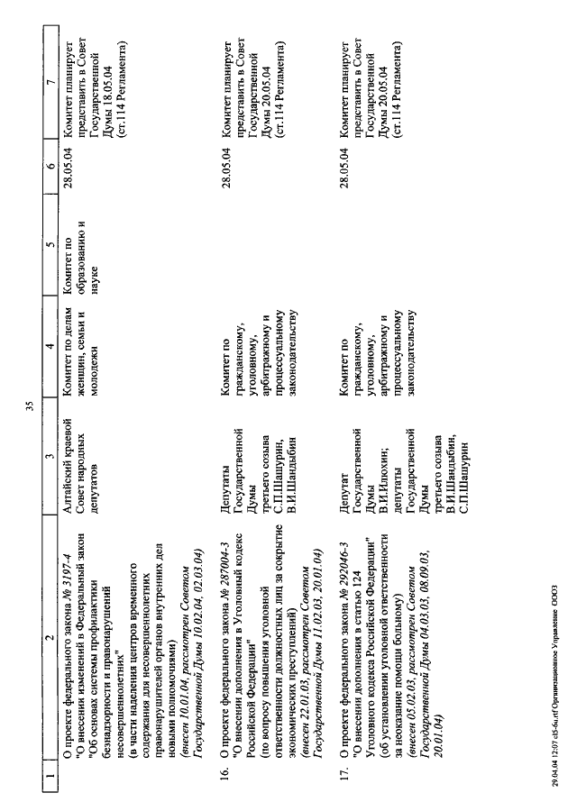 "О КАЛЕНДАРЕ РАССМОТРЕНИЯ ВОПРОСОВ ГОСУДАРСТВЕННОЙ ДУМОЙ С 12 МАЯ ПО 11 ИЮНЯ 2004 ГОДА"