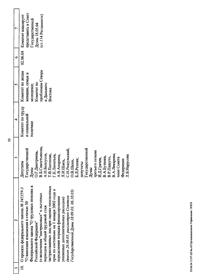 "О КАЛЕНДАРЕ РАССМОТРЕНИЯ ВОПРОСОВ ГОСУДАРСТВЕННОЙ ДУМОЙ С 12 МАЯ ПО 11 ИЮНЯ 2004 ГОДА"