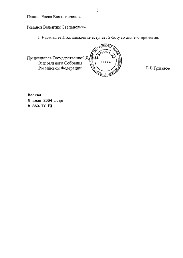 ПОСТАНОВЛЕНИЕ ГД ФС РФ от 09.07.2004 N 863-IV ГД