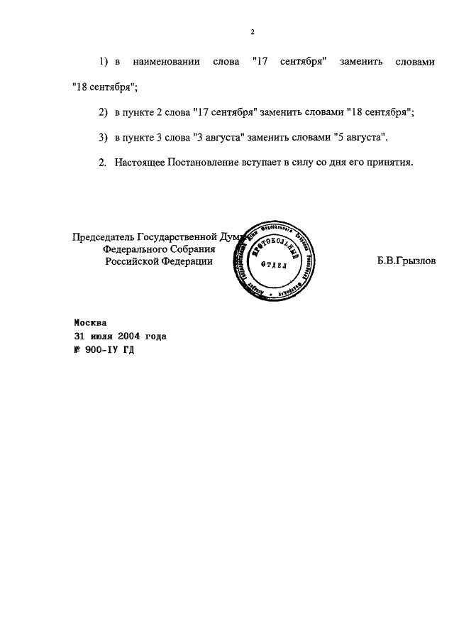 ПОСТАНОВЛЕНИЕ ГД ФС РФ от 31.07.2004 N 900-IV ГД