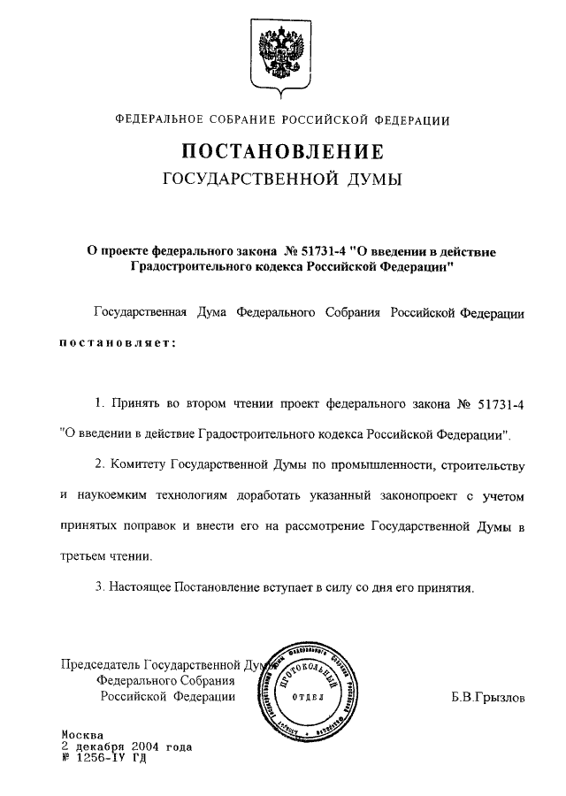 ПОСТАНОВЛЕНИЕ ГД ФС РФ от 02.12.2004 N 1256-IV ГД