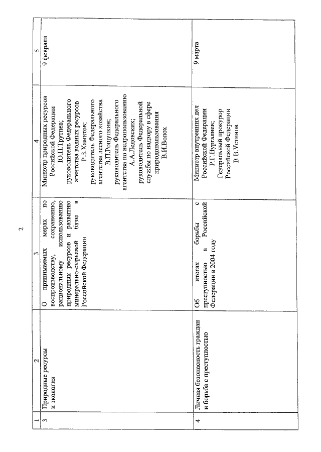 "О ПЛАНЕ ПРОВЕДЕНИЯ "ПРАВИТЕЛЬСТВЕННОГО ЧАСА" НА ВЕСЕННЮЮ СЕССИЮ ГОСУДАРСТВЕННОЙ ДУМЫ 2005 ГОДА"