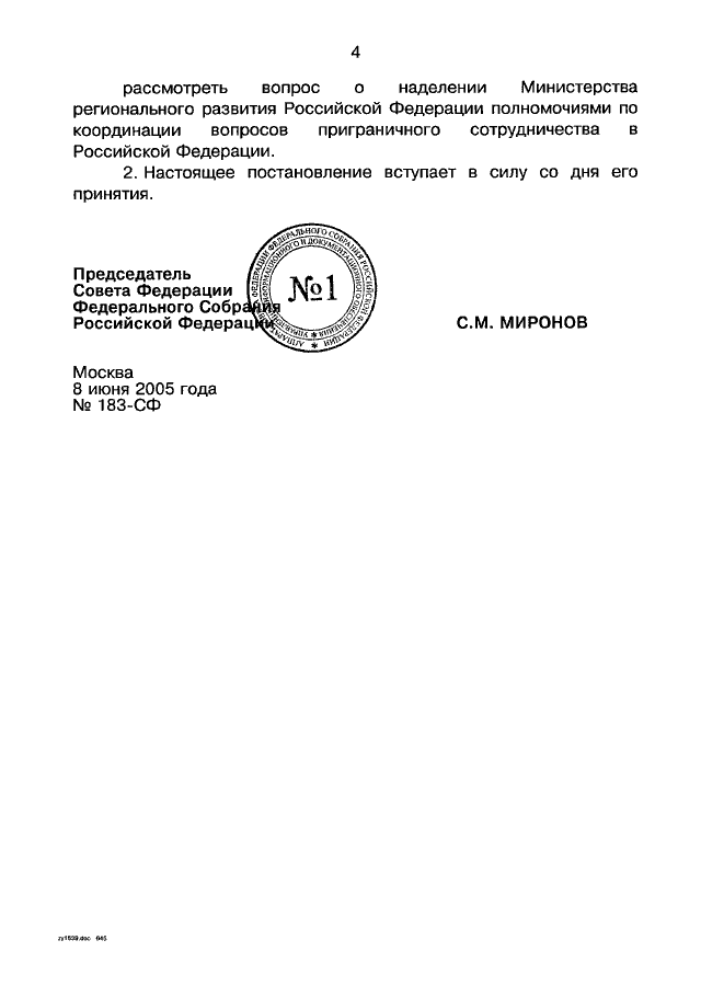 ПОСТАНОВЛЕНИЕ СФ ФС РФ от 08.06.2005 N 183-СФ