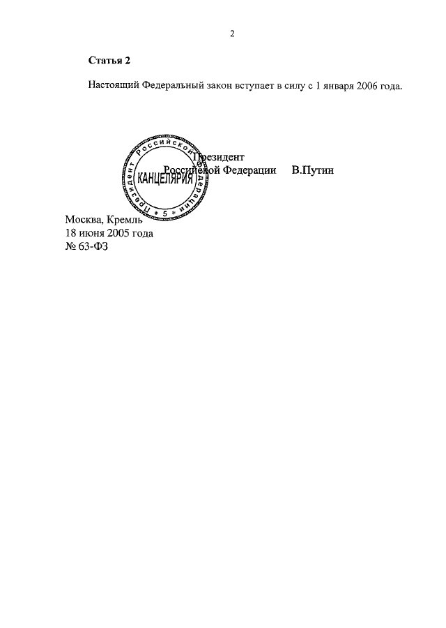 ФЕДЕРАЛЬНЫЙ ЗАКОН от 18.06.2005 N 63-ФЗ