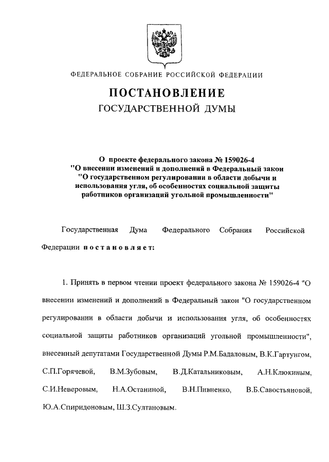 "О ПРОЕКТЕ ФЕДЕРАЛЬНОГО ЗАКОНА N 159026-4 "О ВНЕСЕНИИ ИЗМЕНЕНИЙ И