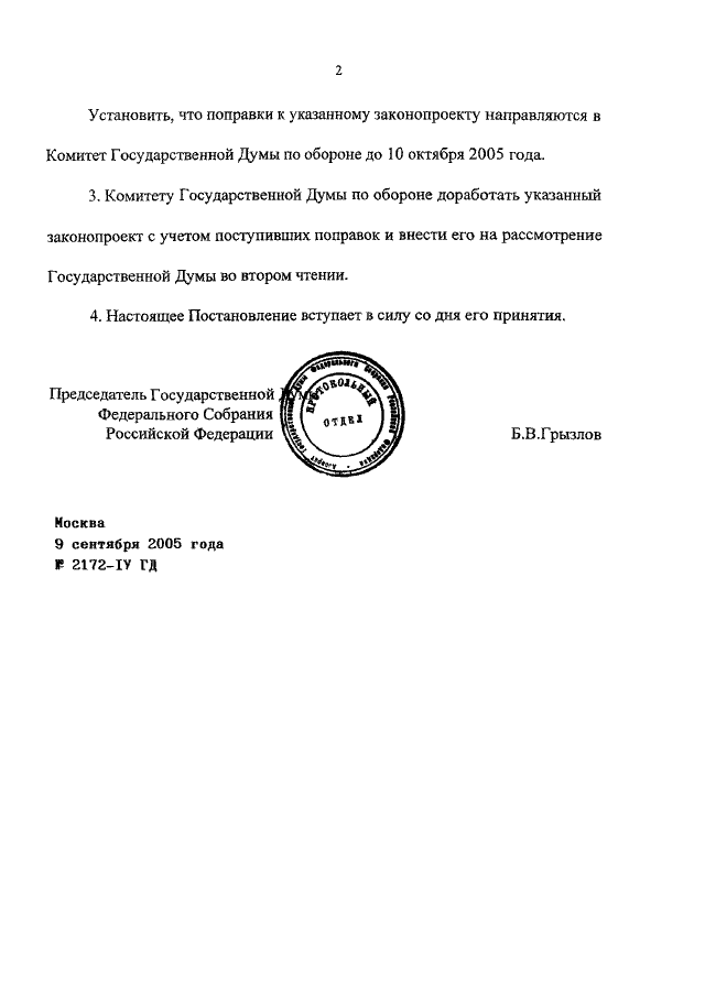 ПОСТАНОВЛЕНИЕ ГД ФС РФ от 09.09.2005 N 2172-IV ГД