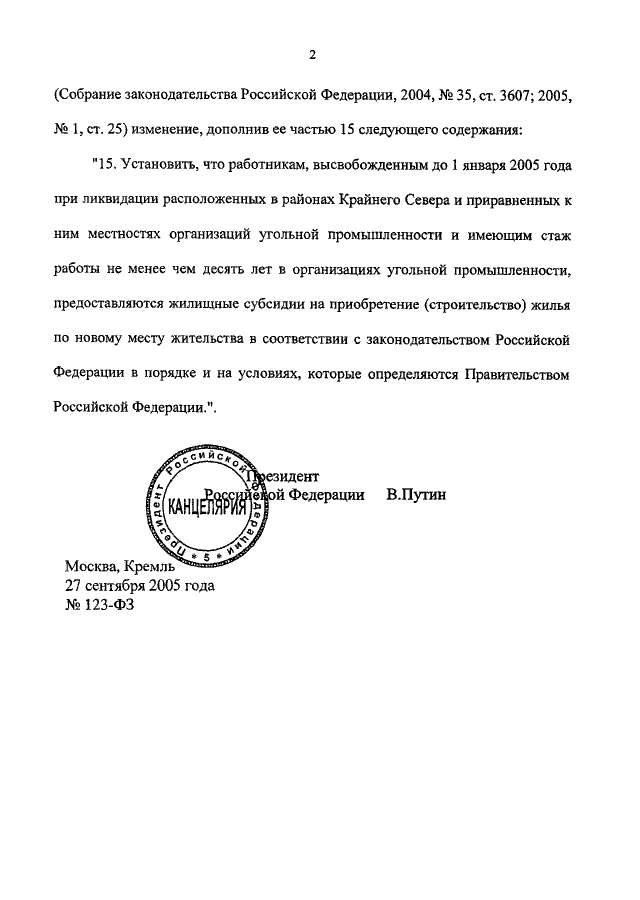 ФЕДЕРАЛЬНЫЙ ЗАКОН от 27.09.2005 N 123-ФЗ