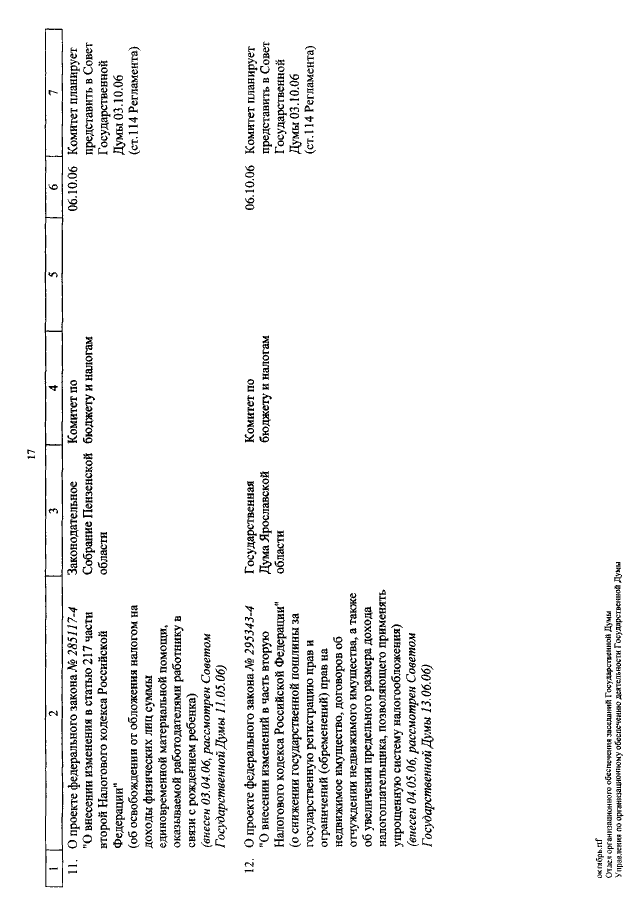 "О КАЛЕНДАРЕ РАССМОТРЕНИЯ ВОПРОСОВ ГОСУДАРСТВЕННОЙ ДУМОЙ С 4 ПО 20 ОКТЯБРЯ 2006 ГОДА"