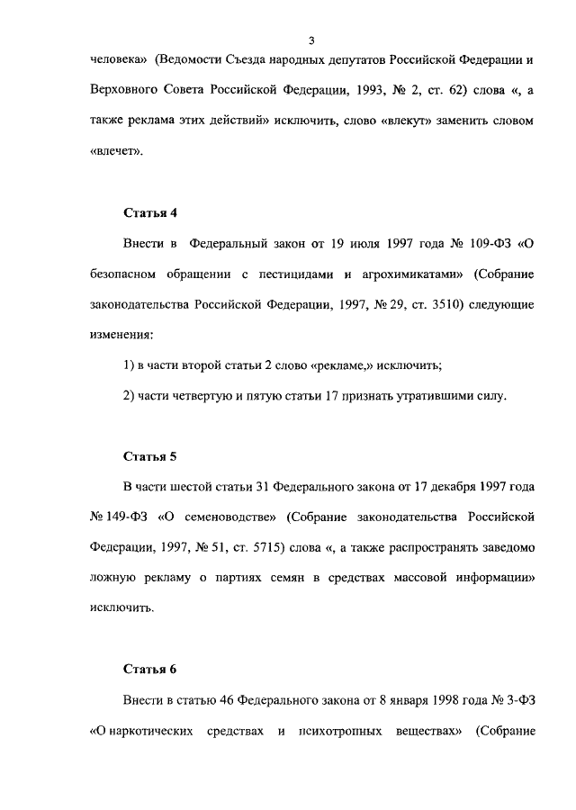 "О ВНЕСЕНИИ ИЗМЕНЕНИЙ В ЗАКОНОДАТЕЛЬНЫЕ АКТЫ РОССИЙСКОЙ ФЕДЕРАЦИИ И ПРИЗНАНИИ УТРАТИВШИМИ СИЛУ ОТДЕЛЬНЫХ ПОЛОЖЕНИЙ ЗАКОНОДАТЕЛЬНЫХ АКТОВ РОССИЙСКОЙ ФЕДЕРАЦИИ В СВЯЗИ С ПРИНЯТИЕМ ФЕДЕРАЛЬНОГО ЗАКОНА "О РЕКЛАМЕ"