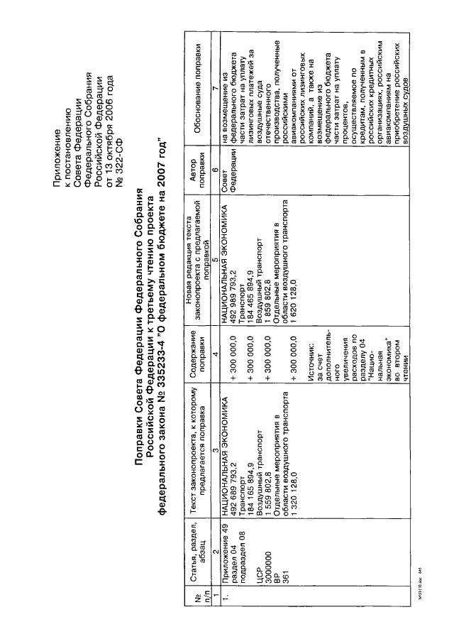 "О ПОПРАВКАХ СОВЕТА ФЕДЕРАЦИИ ФЕДЕРАЛЬНОГО СОБРАНИЯ РОССИЙСКОЙ ФЕДЕРАЦИИ К ТРЕТЬЕМУ ЧТЕНИЮ ПРОЕКТА ФЕДЕРАЛЬНОГО ЗАКОНА N 335233-4 "О ФЕДЕРАЛЬНОМ БЮДЖЕТЕ НА 2007 ГОД"