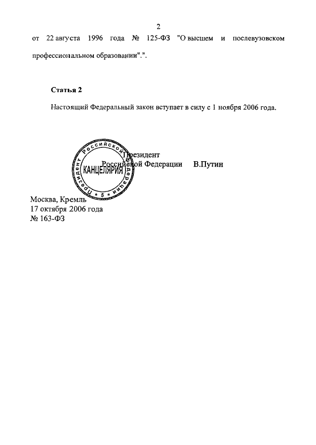 ФЕДЕРАЛЬНЫЙ ЗАКОН от 17.10.2006 N 163-ФЗ