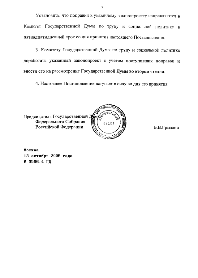 ПОСТАНОВЛЕНИЕ ГД ФС РФ от 13.10.2006 N 3596-4 ГД