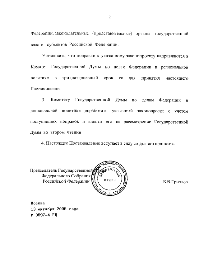ПОСТАНОВЛЕНИЕ ГД ФС РФ от 13.10.2006 N 3597-4 ГД