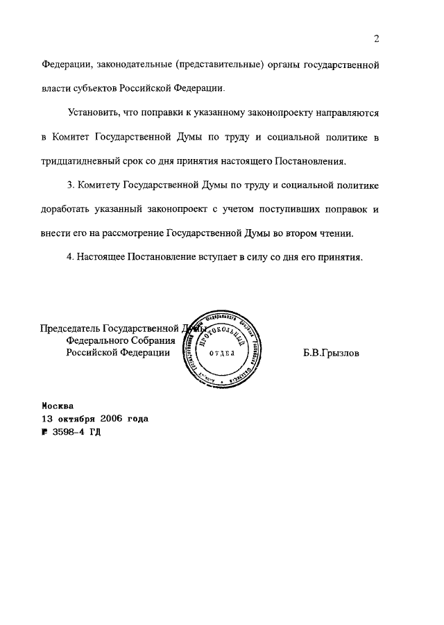 ПОСТАНОВЛЕНИЕ ГД ФС РФ от 13.10.2006 N 3598-4 ГД
