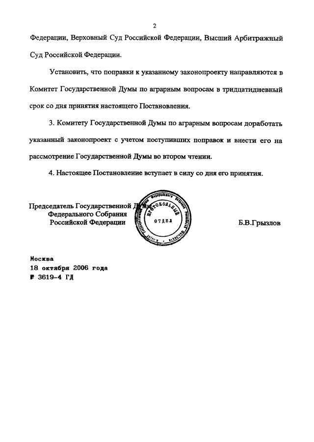 ПОСТАНОВЛЕНИЕ ГД ФС РФ от 18.10.2006 N 3619-4 ГД